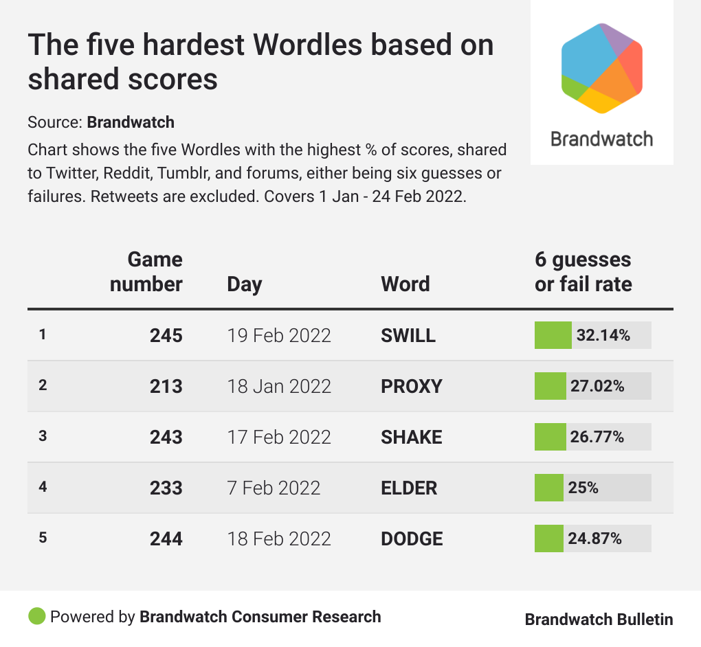 We should note that this data is self-reporting, so this is by no means a rigorous analysis. It’s fair to assume people are more likely to share better scores although, looking at the data we collected, it’s clear there are a lot of honest Wordle players out there when it comes to reporting failure.