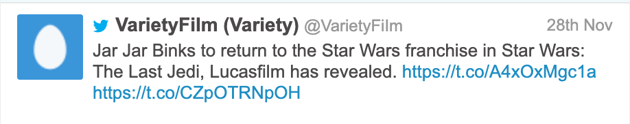 The 1st and 3rd most retweeted Rickrolls are from a now suspended account which parodied Variety magazine with a film-theme account. They posted a lot of Rickrolls while they were around, but here are the two most popular: