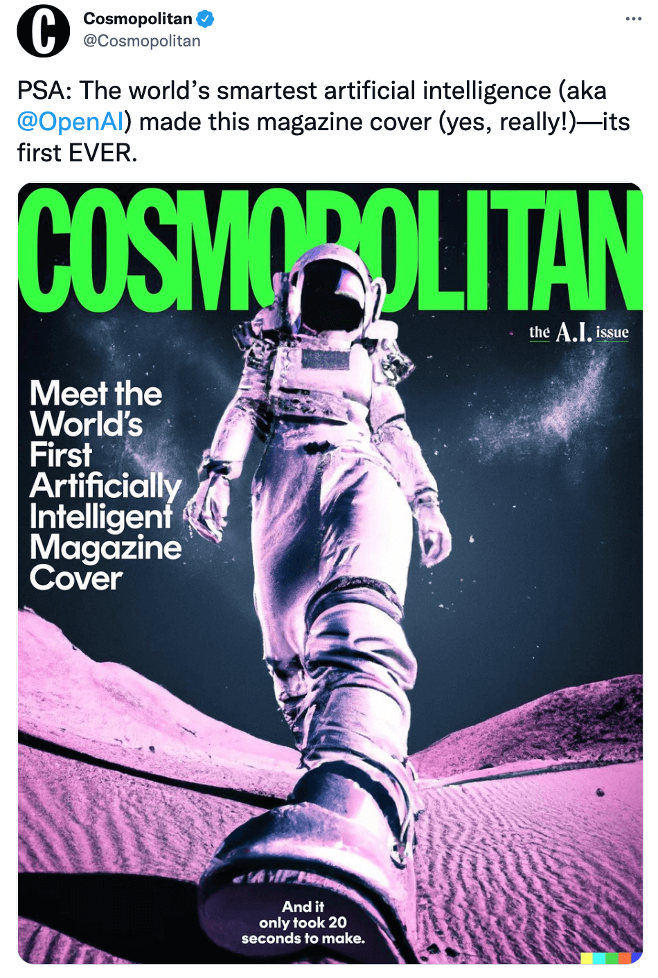 OpenAI certainly isn’t being passive though. It’ll take some work, but it will be possible to fix things. We reckon designing the cover for Cosmopolitan is a perfect start.
