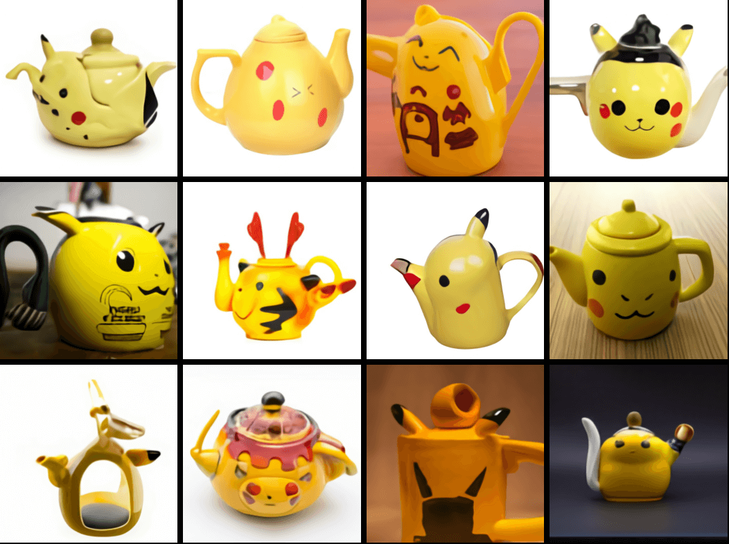 For example, the below images are based off the prompt “A teapot in the shape of Pikachu”. You can have a play around with the technology and create your own images within set restrictions here.