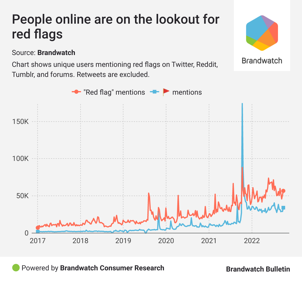 Whatever you define as a red flag, based on social media data, it’s clear more and more people are looking out for them.