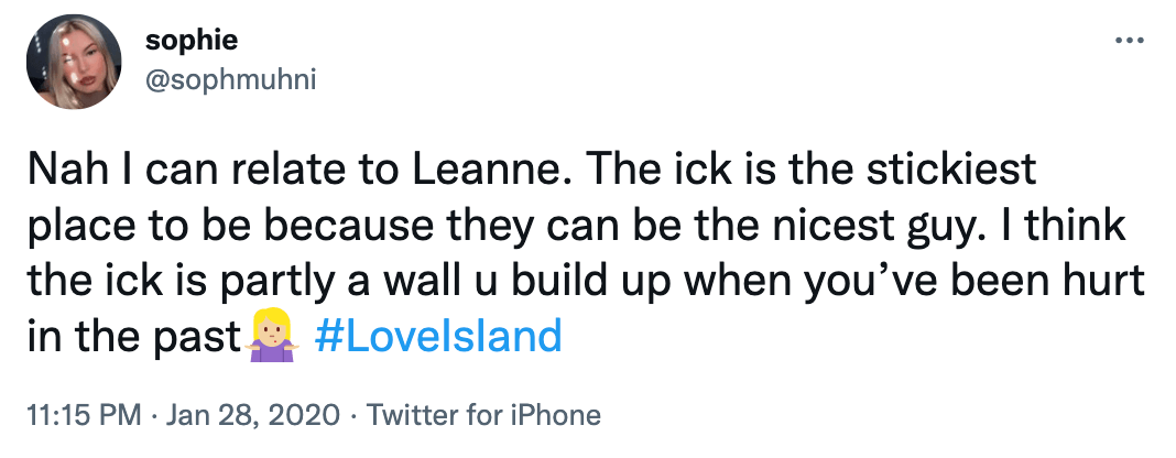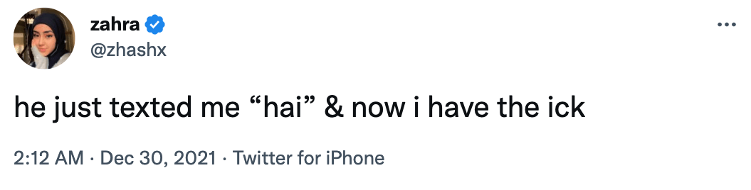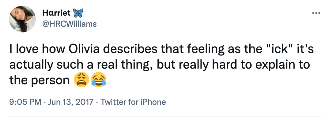 Putting aside how wrong that review is, we’re still not at “the ick” yet. The ick factor is far too broad and is something you ascribe to something else, not something you get. But we’re getting somewhere.