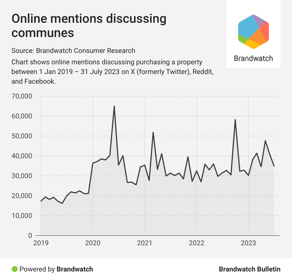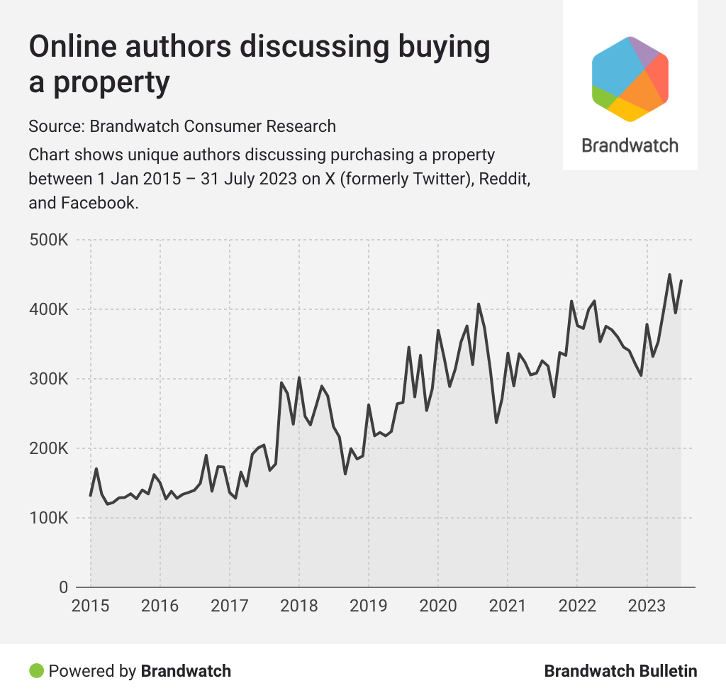 Over the last five years, negative sentiment has continued to peak. With an unsurprising climax in negative sentiment-categorized mentions after the start of the pandemic, pessimism about house purchasing has continued to creep up.