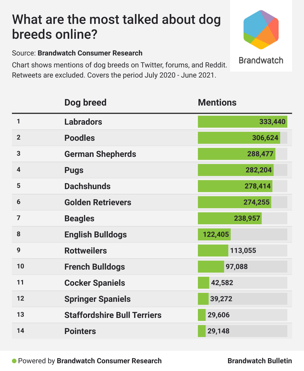 Of course, we can’t write about dogs and not include a picture. Based on the Brandwatch Reach metric, here’s the picture within the dog breed conversation that was seen by the most people. He went with the name Gert if you wanted to know.