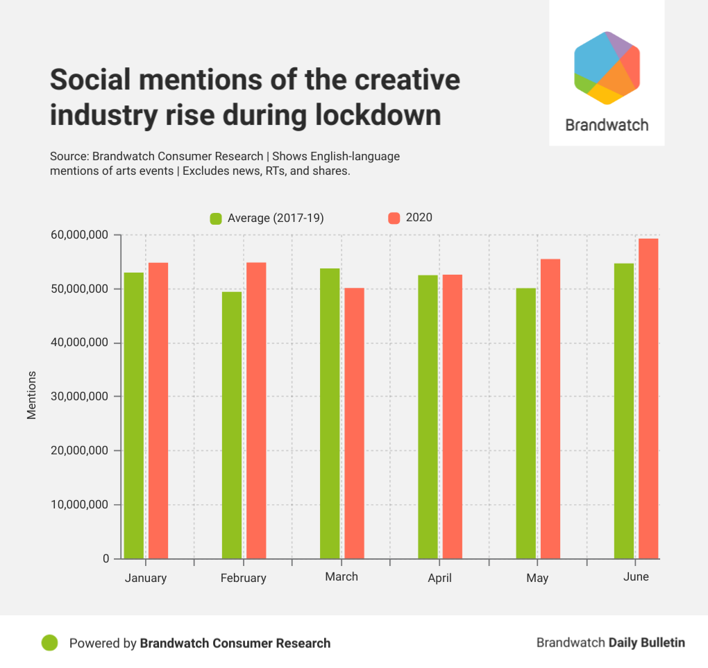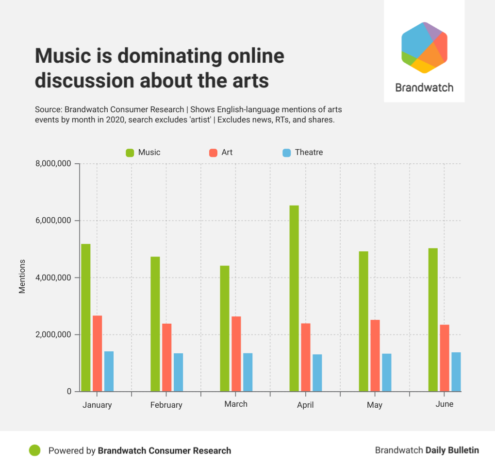 From March 1 to June 31 2020 our Consumer Research platform found 4m mentions from folks stating that they wouldn’t feel comfortable attending a cultural event like a gig or an art gallery so long as Covid-19 isn’t contained.