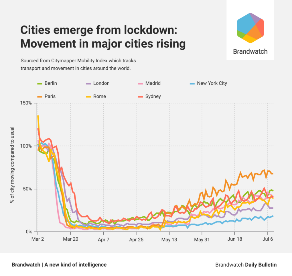 Right now, of all the cities we looked at with Citymapper, New York has the lowest percentage of people moving around.