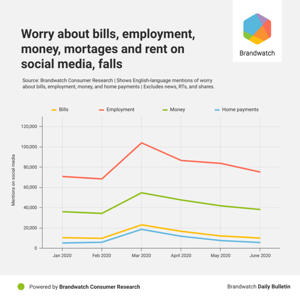 For now, it seems as though consumer financial worries are subsiding. And, according to our Consumer Research platform, people on social media are beginning to get back to non-essential spending. It may not be boom-time, but people are definitely excited to get back to some kind of normality.