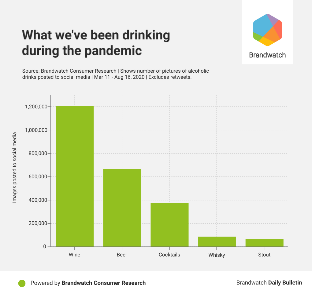 We also looked at what alcoholic drinks have been most popular during the pandemic by analyzing images posted to social media.