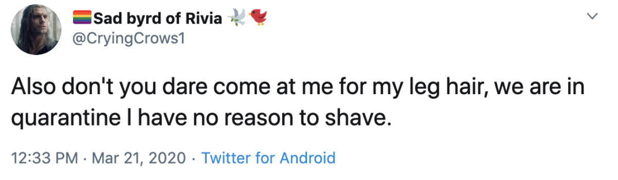 In terms of growing hair, it seems we are living in a leg hair renaissance. 7.7k unique authors have proclaimed they are not shaving their legs during this lockdown, an increase of 2431% compared to January 2019.