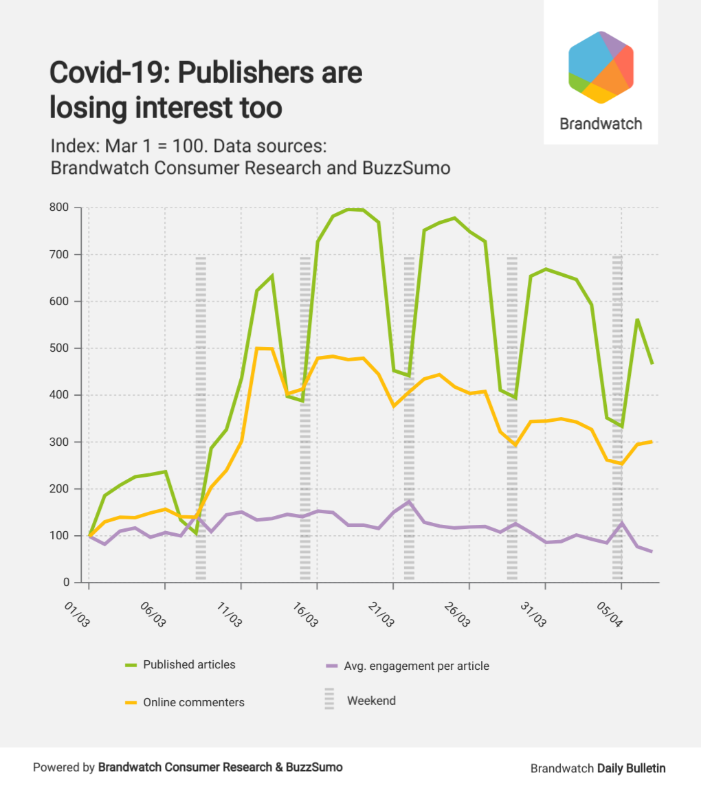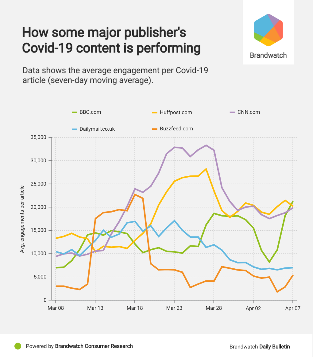 This could show that people have turned away from lighter or more entertainment-focused sites like BuzzFeed for sites that are better known to specialize in news content. Early in March, it felt a lot easier to have a bit of fun and joke around. Then, as the situation developed, that didn’t sit so well with people.