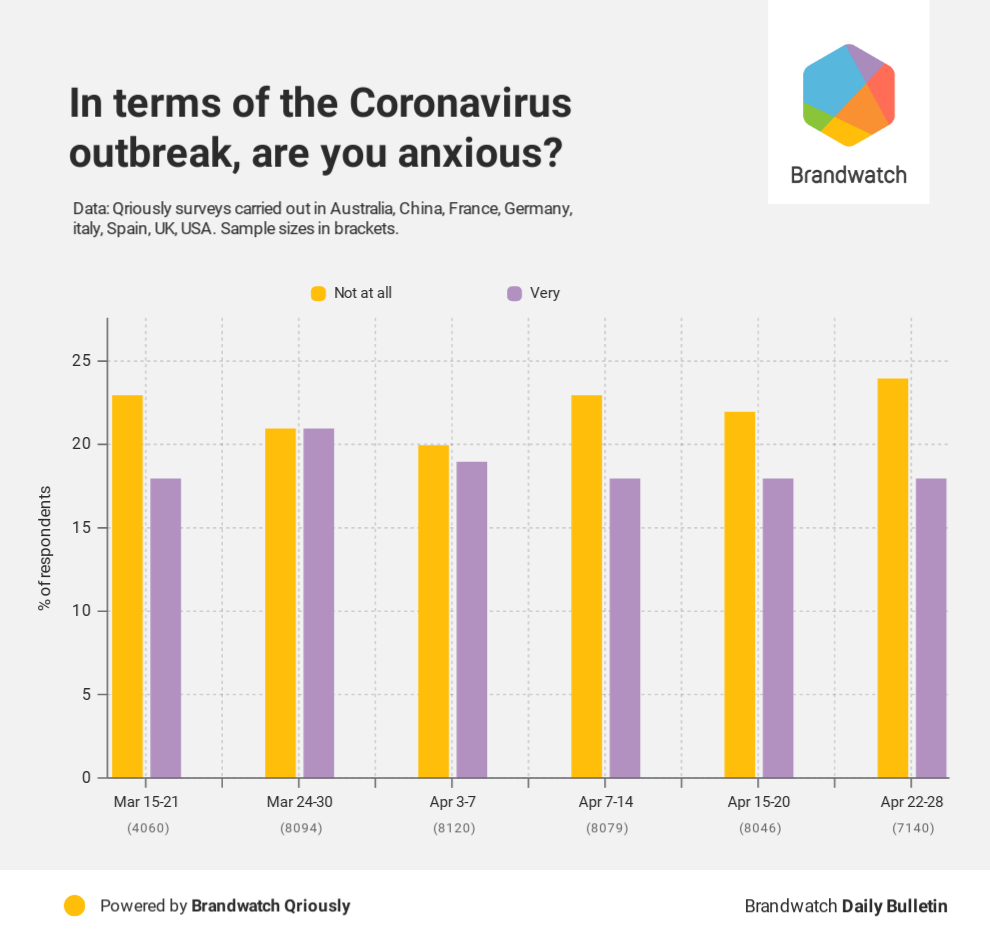 On a more positive note, the number of those with no anxiety around the pandemic is at its highest level so far, with 24% putting themselves in this group. If the situations in the countries we survey continue to improve, we can expect this number to do the same.