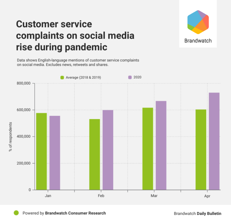 Delivery was also a huge driver of customer complaints — people telling businesses they’d lost a customer because of delivery was up 51% in March and April compared to January and February.