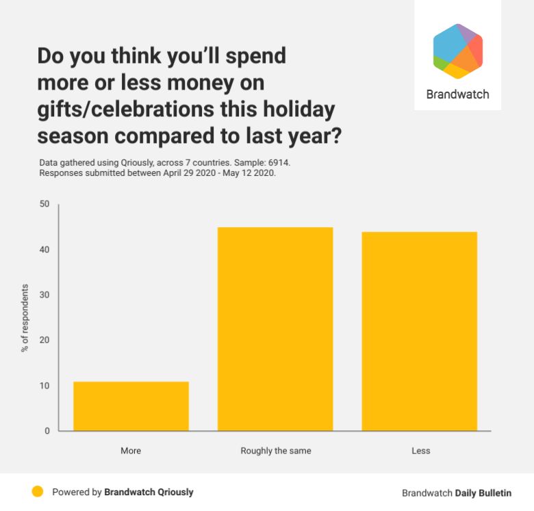 For most, it’ll be the same or less, with 45% and 44% of the responses respectively. It’s a pretty bleak picture, considering the holidays are a long way off yet.