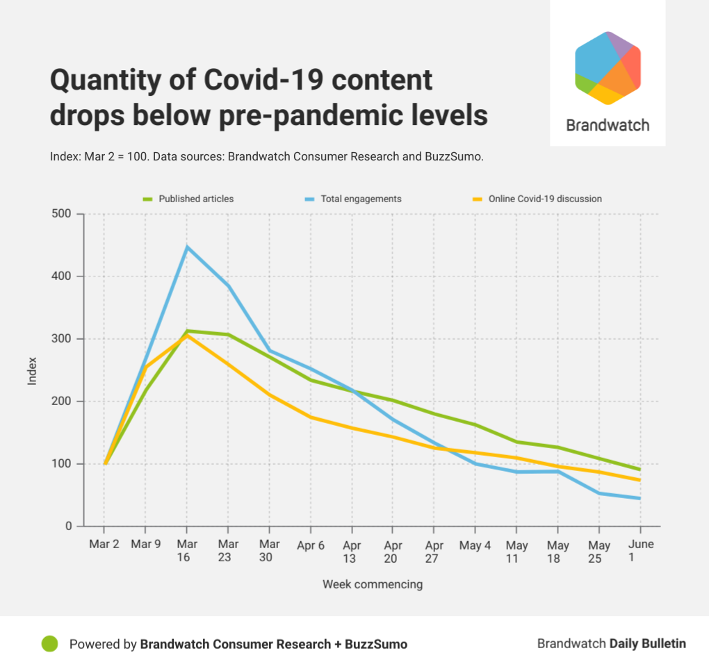 While movement is increasing, fear is still palpable. Using our Consumer Research platform, we found hundreds of thousands of people worried about catching Covid-19 while out and about. Since April 27, there have been 281k English-language mentions about catching the virus on public transport, while there have been 196k referencing others not wearing masks while going about their daily business.