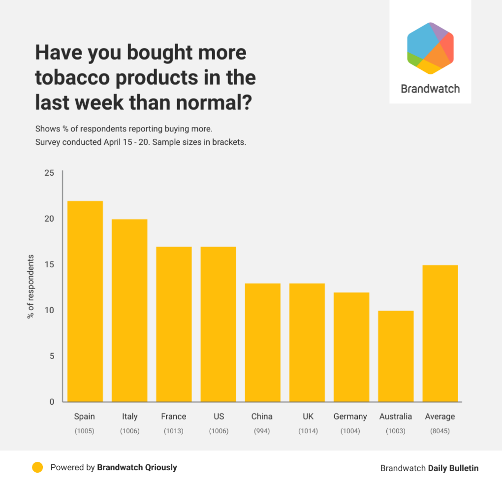 On average, 15% of respondents said they’d bought more tobacco products in the last week than they normally would.