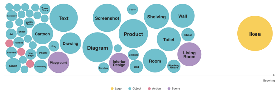 Además de la detección del logos, los usuarios de Analytics pueden ver ahora los objetos, las acciones y las escenas asociadas a esos logotipos.