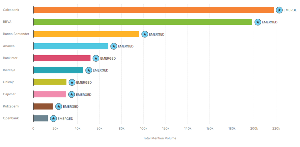 Buscamos todas las menciones en línea relacionadas con 13 instituciones financieras en España para tener una visión clara del panorama nacional.
