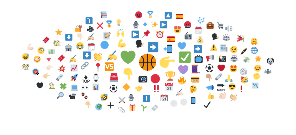 De acuerdo con la nube de emoji, la pelota de baloncesto es el emoji más usado.