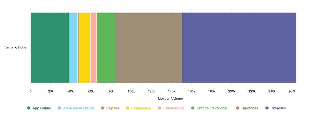 Todas las conversaciones han estado relacionadas con estos bancos (Abanca, Caixabank, Unicaja, Cajamar, Banco de Sabadell, BBVA, ING, Banco Mediolanum, Bankinter, Ibercaja, Kutxabank, Banco Santander y Openbank). Las menciones se han monitorizado en sitios como Twitter, Instagram, Reddit, blogs, foros y sitios de reseñas.