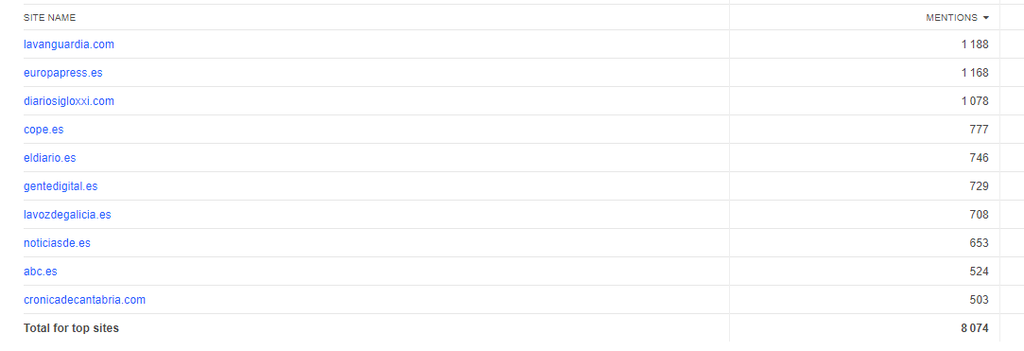 Con respecto a medios de noticias, destacan entre los 3 primeros “La Vanguardia”, “Europa Press” y “Diario Siglo XXI”