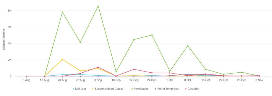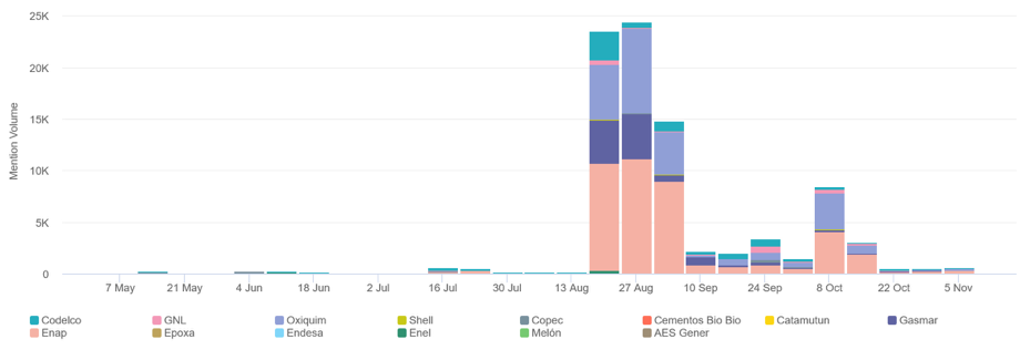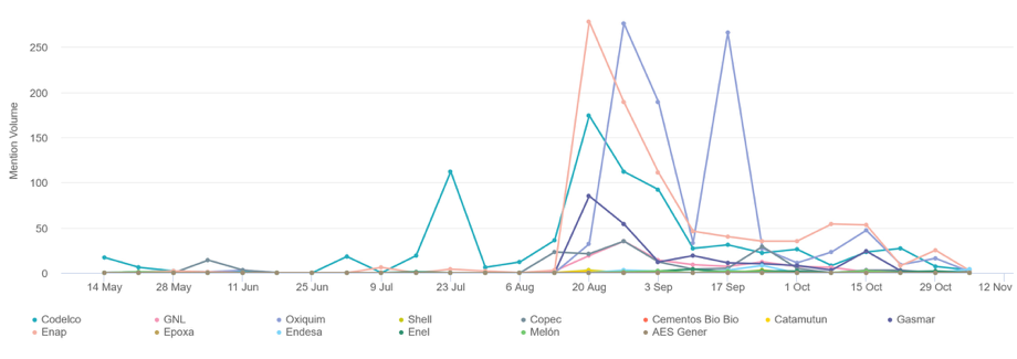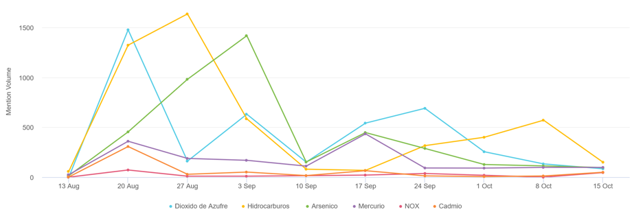 Para conocer y entender la emergencia ambiental de Ventanas, analizamos los contenidos relacionados con el tema medioambiental publicados en Twitter, Instagram, blogs, portales de noticias y foros públicos, acotando la búsqueda del 19 de agosto al 18 de octubre de 2018.