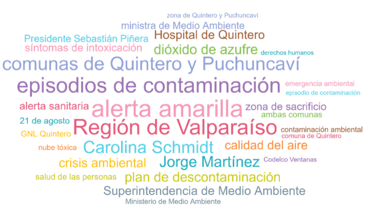 En cuanto al contenido de las conversaciones, cabe destacar el hallazgo de un dato interesante: uno de los trending topics no se refirió a, por ejemplo, la evolución de las emisiones industriales o el estado de salud de las personas intoxicadas, sino al aparente suicidio de uno de los principales activistas de la zona, Alejandro Castro, cuyo cuerpo apareció colgado junto a una vía férrea.