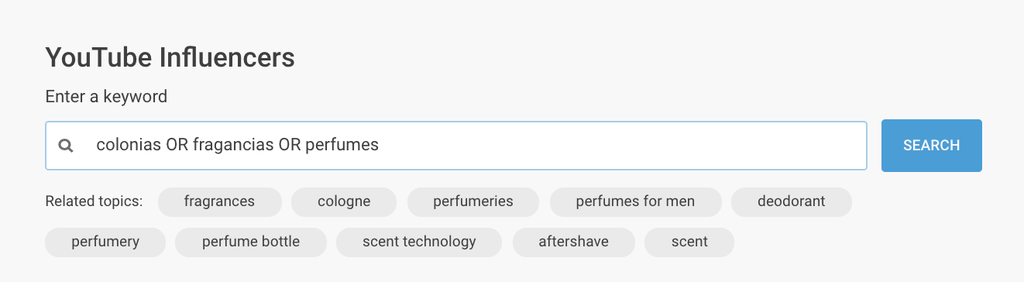 De igual forma, BuzzSumo nos aconseja, teniendo en cuenta algunas palabras clave que introducimos en su buscador (ver imagen), los youtubers más influyentes que comentan o basan sus canales en estos temas determinados.