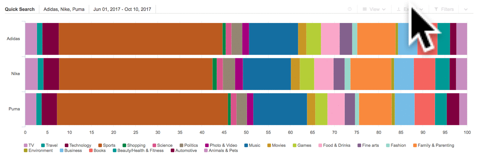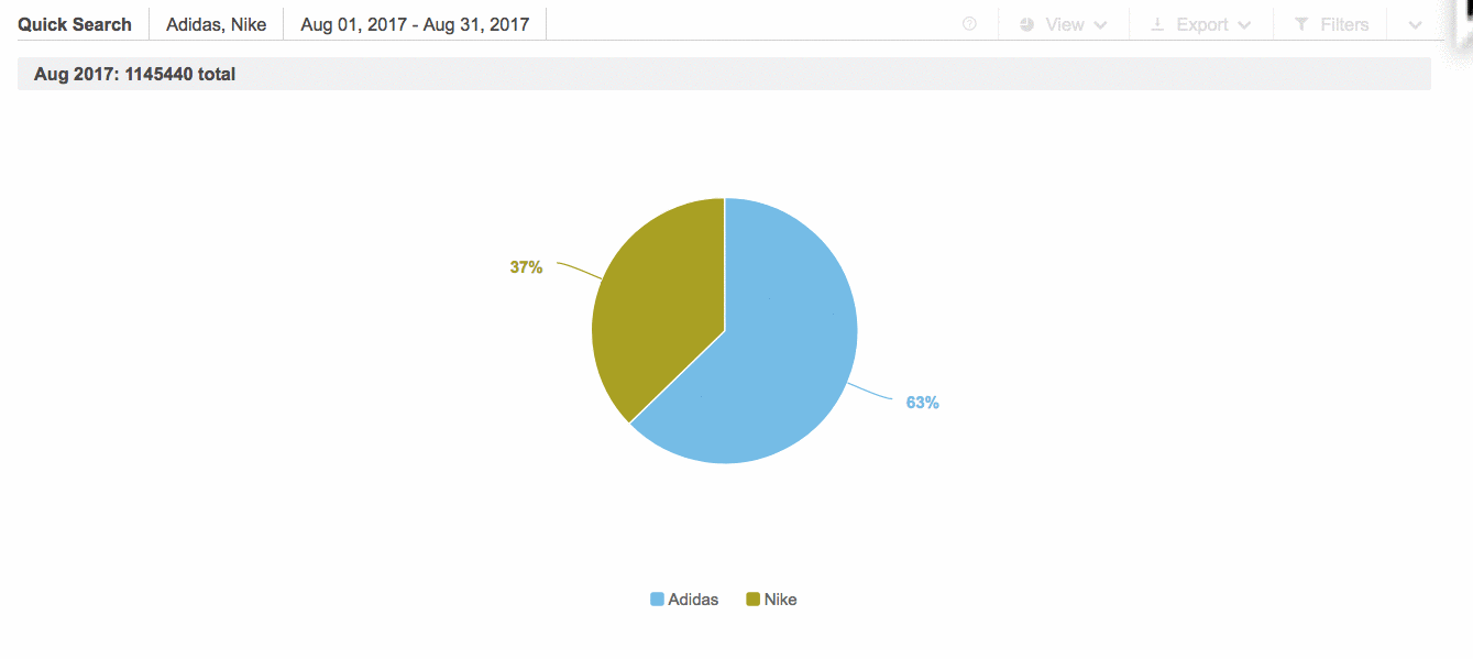 Adidas supera a Nike en share of voice. Sin embargo, al usar Quick Search podemos analizar cada producto.