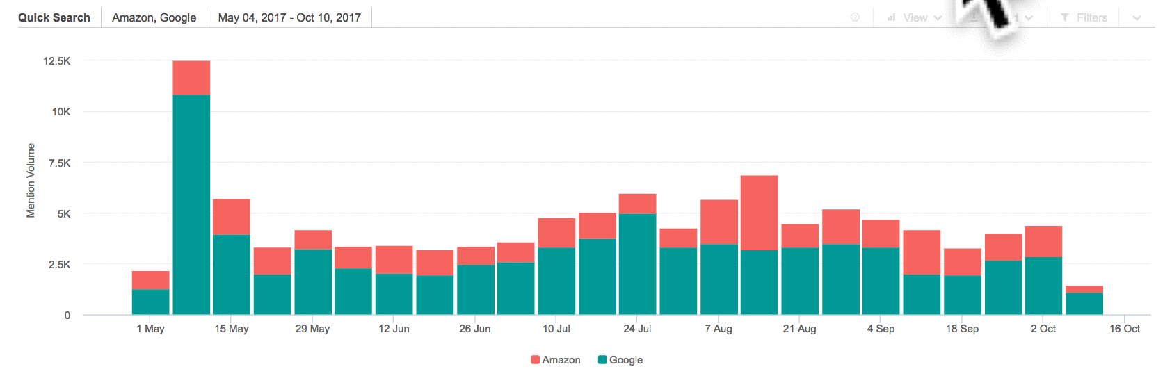Se habla más de Google que de Amazon en línea (tal como se ve en esta muestra del 5%). Pero eso no quiere decir que sea igual para todos sus productos.
