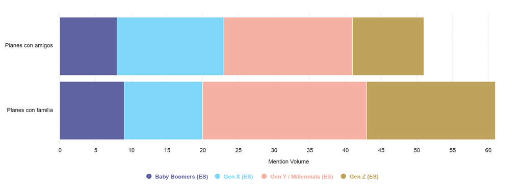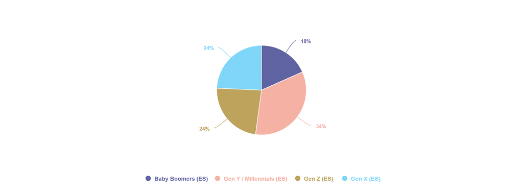 Al segmentar a los usuarios por generaciones, podemos ver que los millennials son los más activos (con un 34 % del volumen de la conversación). Sin embargo, la diferencia en el número de menciones no es tan considerable con el resto de los grupos de edad.