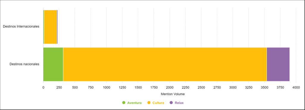 Sin importar el destino, las actividades culturales predominan en la conversación. La categoría agrupa conversaciones que incluyen palabras como: museos, teatro, arte, literatura, entre otras.