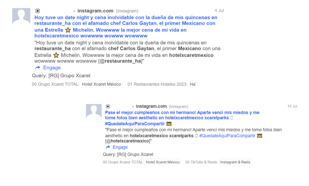 Al mismo tiempo, para nosotros es de gran valor el poder visualizar qué es lo que las otras marcas del segmento de hospitalidad y travel están realizando a nivel de redes sociales. Sobre todo, para poder establecer parámetros de mejores prácticas y aprender de otros grandes en la industria.