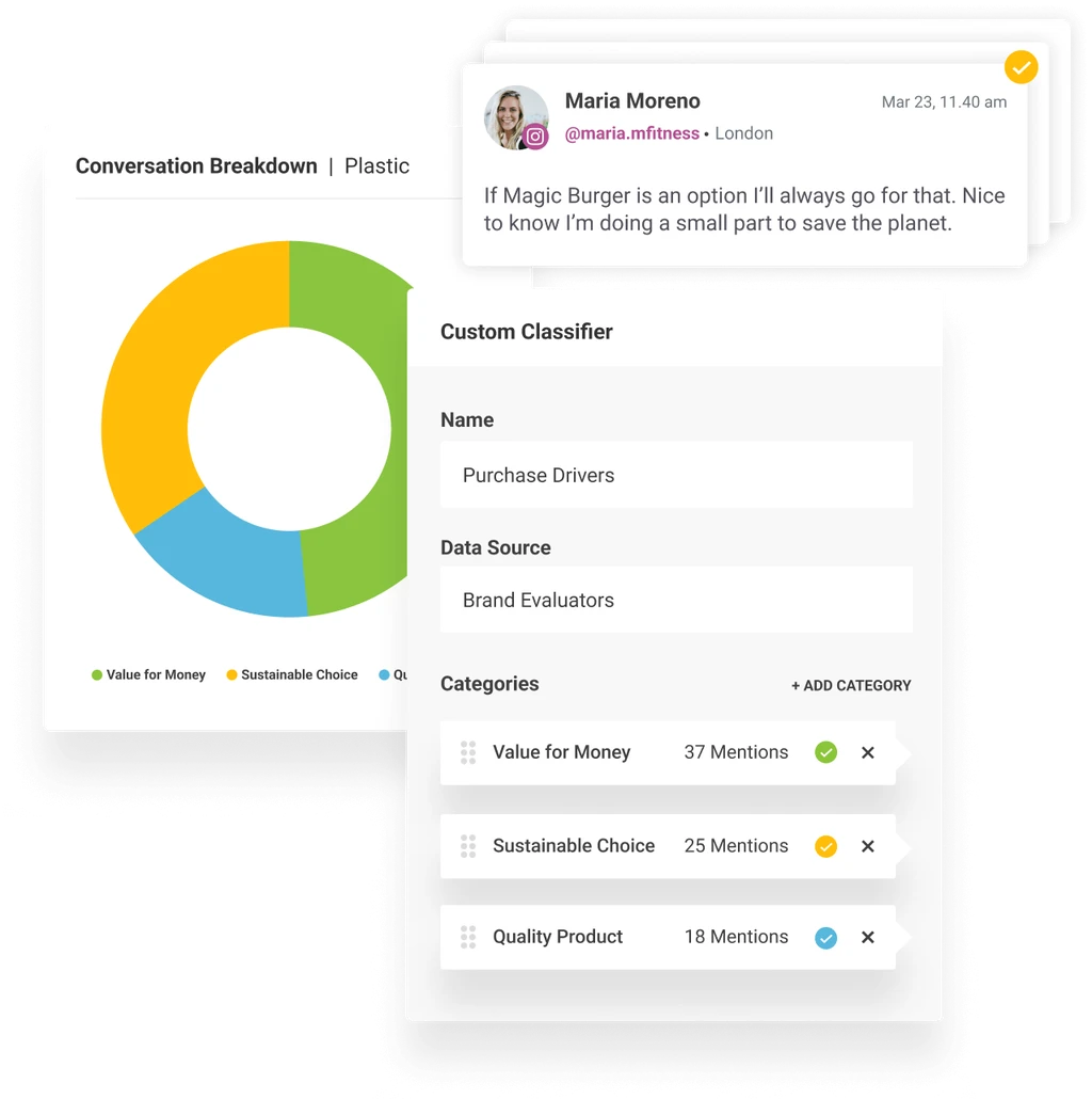 Ve más allá de las métricas y los informes habituales, pon la voz del consumidor en el centro de tu organización con análisis profundos y detallados a los que todo tu equipo podrá acceder y explorar fácilmente.