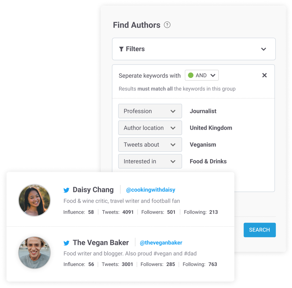 Filtra por intereses, afinidades de marca, otros trabajos con marcas, credibilidad y más.