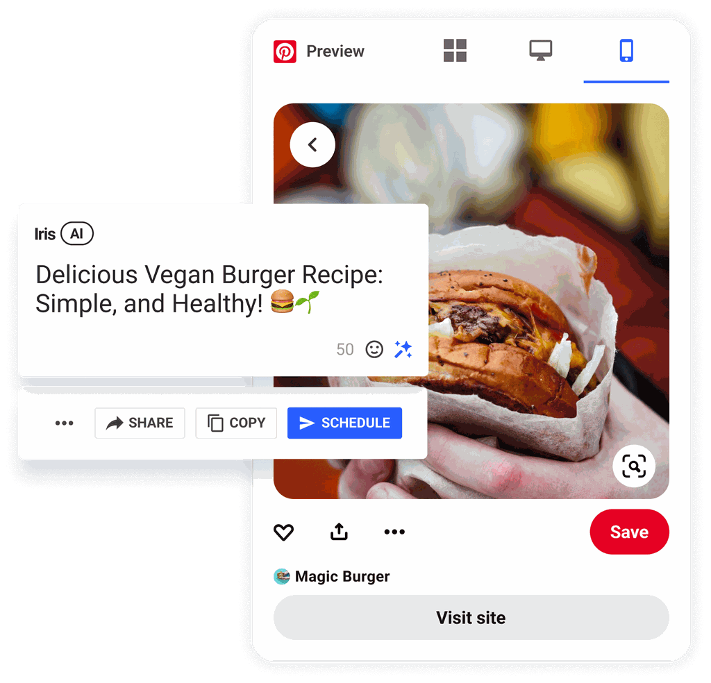 Crea y previsualiza fácilmente pines y tableros de Pinterest
