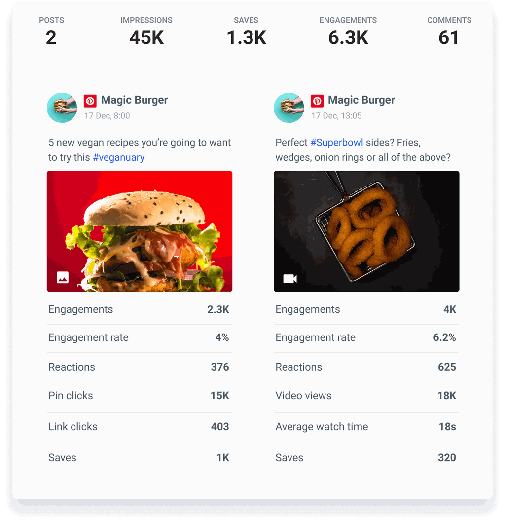 Profundiza en las métricas de tus pines para maximizar el tráfico. Personaliza fácilmente tus paneles de mando para resaltar las métricas que más te importan.