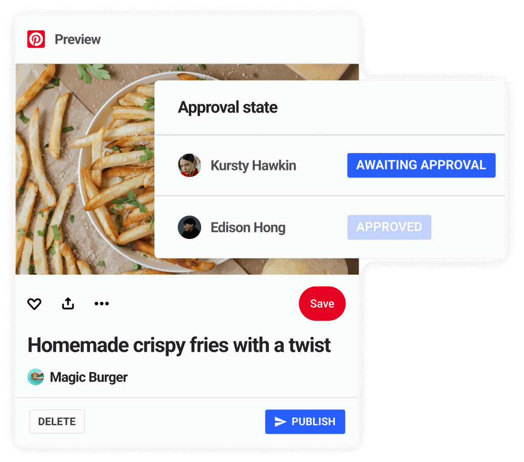 No pierdas el tiempo con hilos de correo electrónico y mensajes interminables: fomenta la colaboración en el contenido de Pinterest con funciones inteligentes.