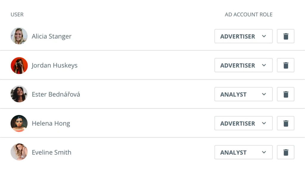 El trabajo en equipo eficiente y la consistencia de la marca son clave para ejecutar una estrategia publicitaria óptima. Asigna funciones de usuario a los miembros del equipo y gestiona la creación y optimización de anuncios en diferentes canales y países.