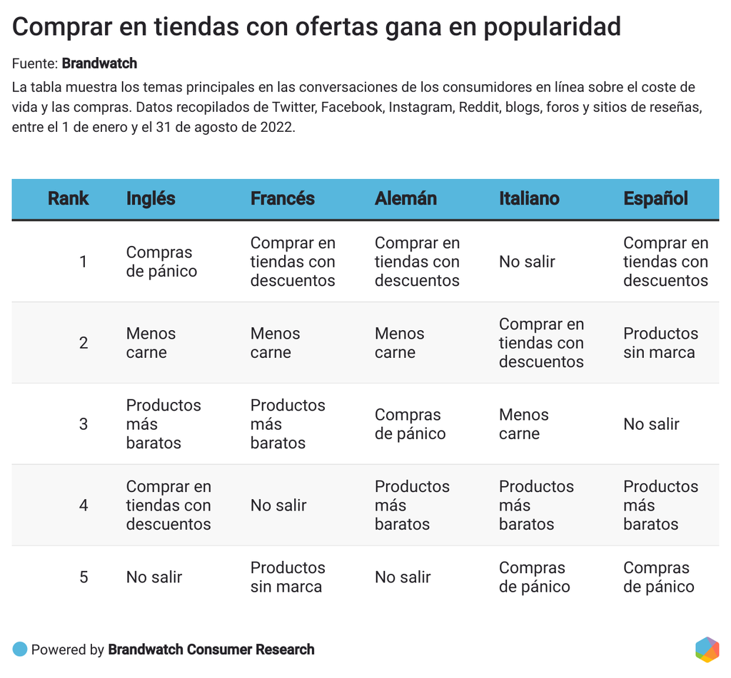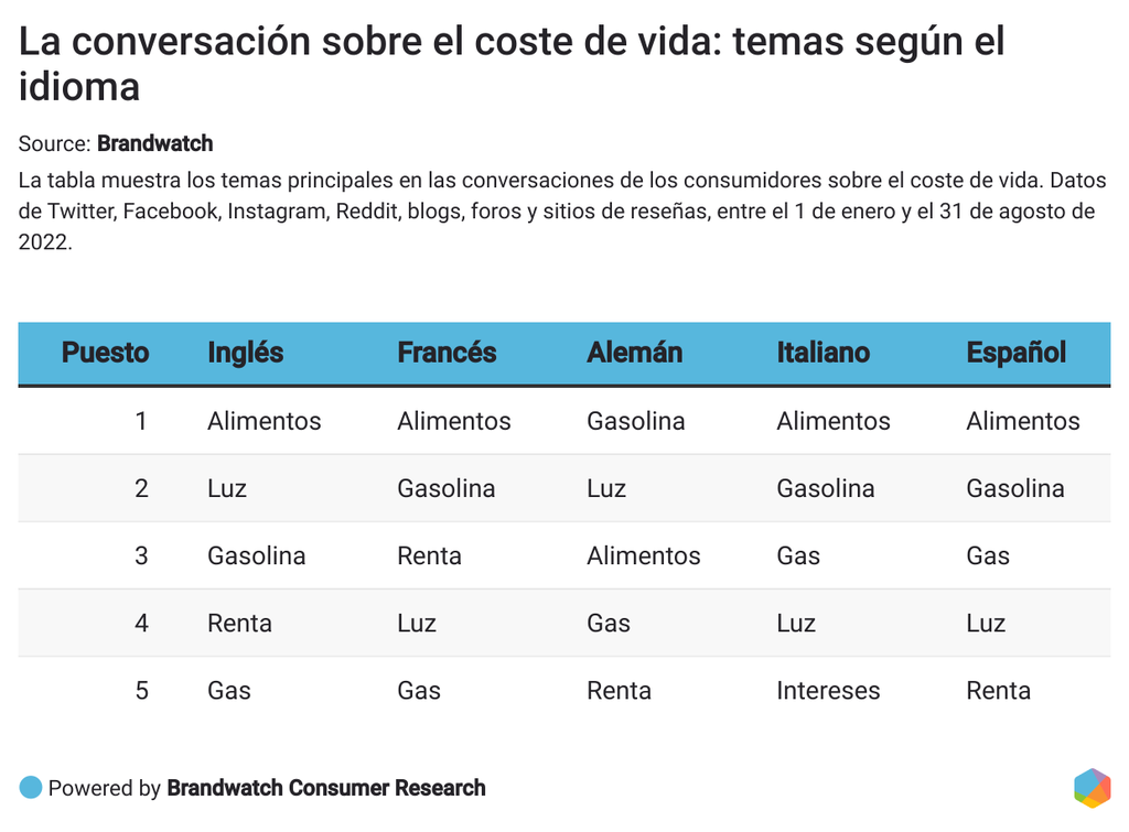 - Los principales temas de conversación de los consumidores sobre el coste de vida.