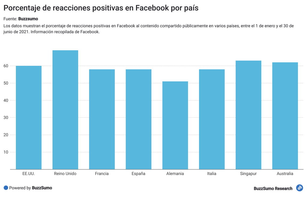 Reino Unido es el país con más reacciones positivas en Facebook, seguido de Singapur.