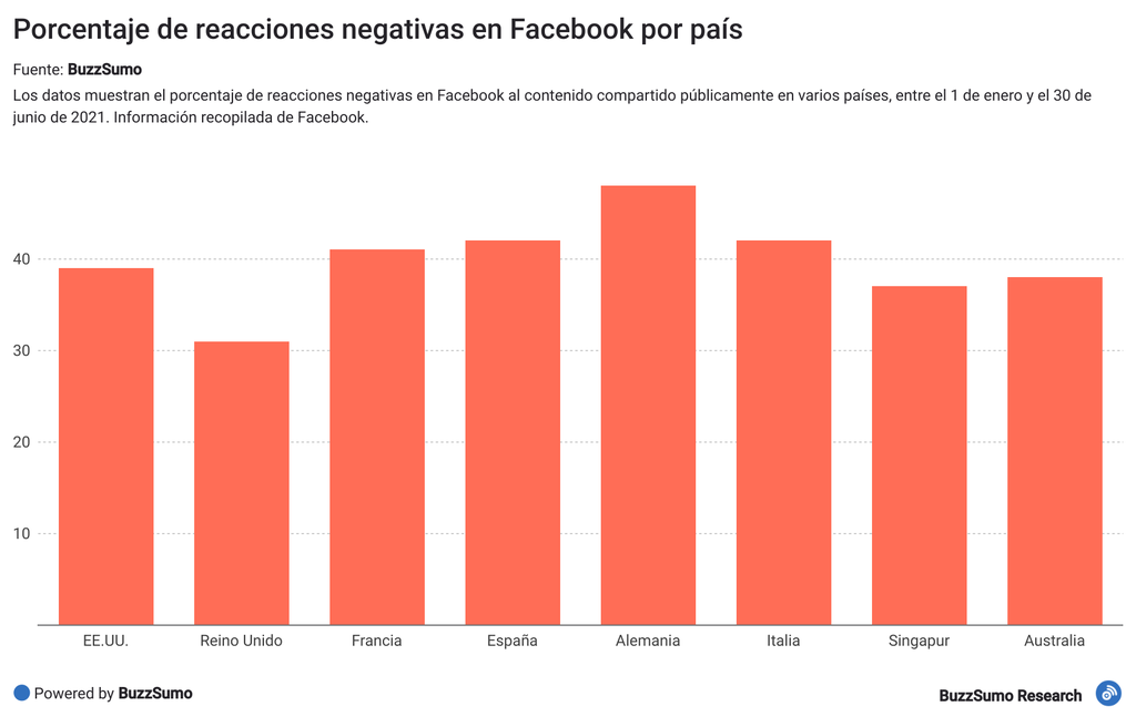 Alemania es el país con más reacciones negativas en Facebook, seguido de España e Italia.