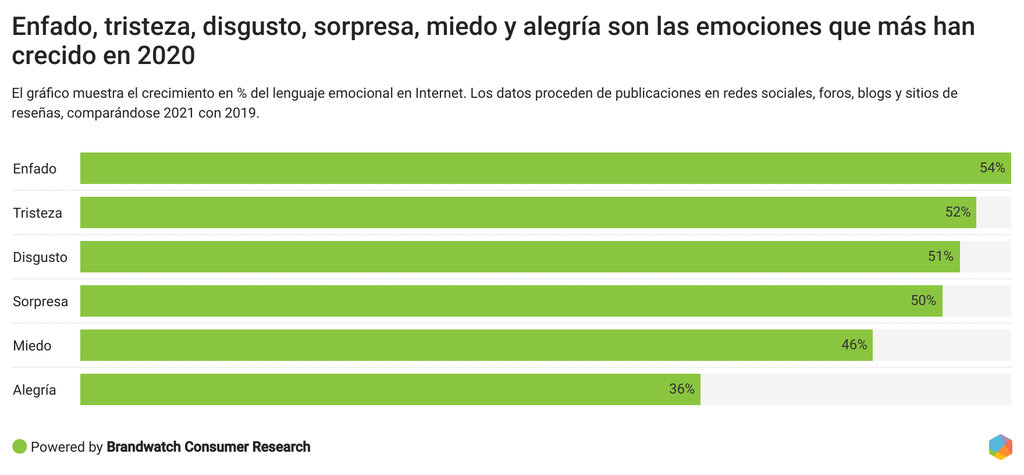 Además, ha sido el sentimiento que más ha crecido durante los últimos seis meses (un 8% más en cuanto a volumen de menciones frente al periodo anterior).