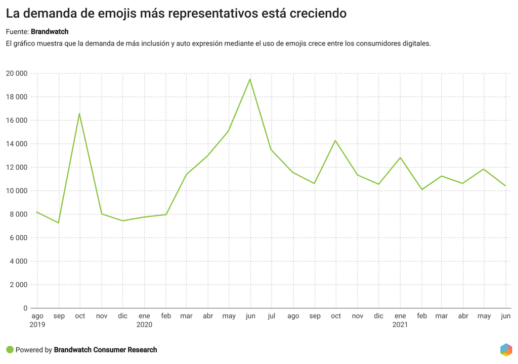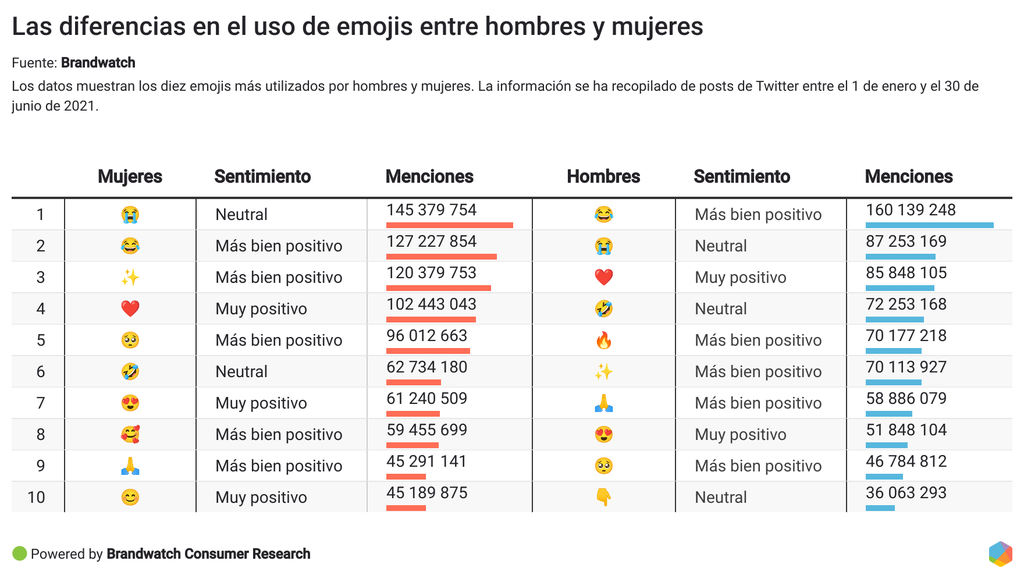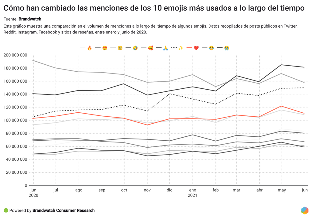 De hecho, durante este año, el máximo histórico de menciones con emojis por semana (la del 4 de enero de 2021) ha alcanzado los 5,33 millones.
