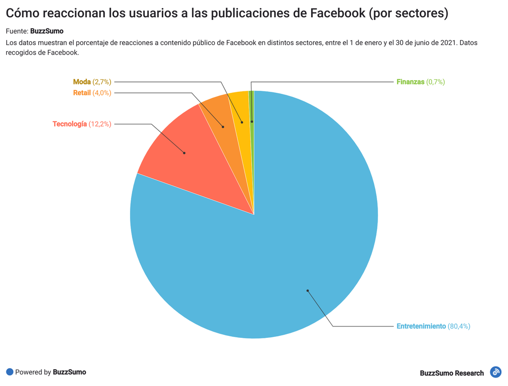 Quizás no sea una sorpresa que los usuarios de Facebook reaccionaran mucho más al contenido de entretenimiento que al de cualquier otro sector.