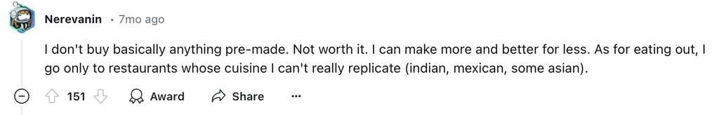 En las conversaciones negativas, los consumidores se sienten decepcionados porque la calidad de la comida no ha cumplido sus expectativas o porque es demasiado cara.