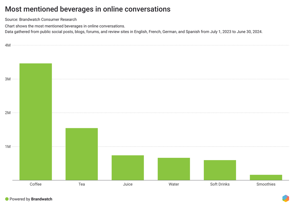 A los consumidores también les encanta experimentar con los alimentos y las bebidas, y las tendencias en este sector se propagan rápidamente en las redes sociales. Con plataformas de inteligencia del consumidor como Brandwatch, las marcas pueden estar al tanto de las últimas tendencias y aprovechar las oportunidades que surgen con ellas.