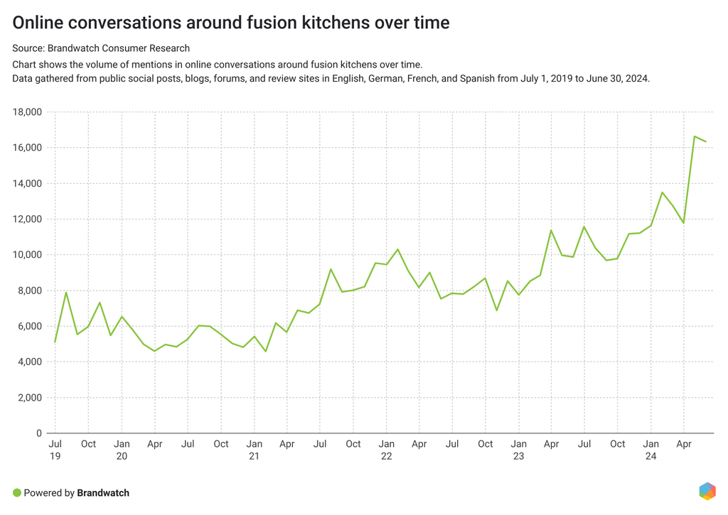 Según Google Trends, el interés por la "cocina fusión" alcanzó su nivel más alto de los últimos cinco años en junio de 2024.