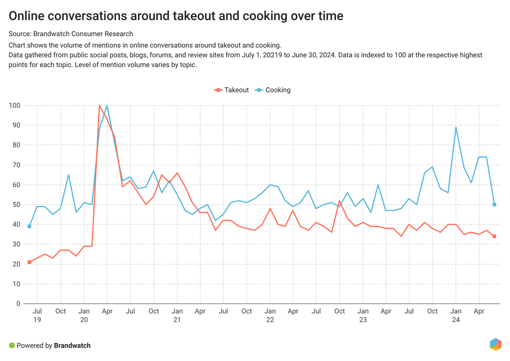La comida y la bebida son temas populares en las conversaciones online y sus menciones han aumentado un 6% en el periodo comprendido entre el 1 de julio de 2023 y el 30 de junio de 2024, y en comparación con los 12 meses anteriores.