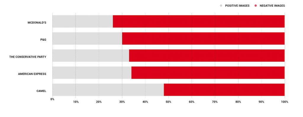 Una vez reunidas esas empresas y agencias, clasificamos las organizaciones según su volumen de imágenes en Twitter e Instagram. Luego identificamos las 100 marcas principales y realizamos análisis adicionales.