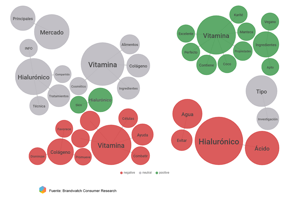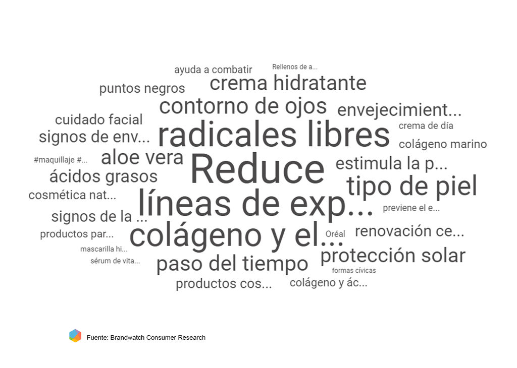 Un dato a tener en cuenta por aquellas marcas cosméticas que lo incluyen entre sus componentes habituales; comprobar qué es lo que suscita preocupación entre los consumidores digitales puede ayudarlas a combatir la desinformación (si la hubiera) o a elaborar mensajes más relevantes para su público objetivo.